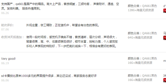 整理一些来自淘宝用户的评价: